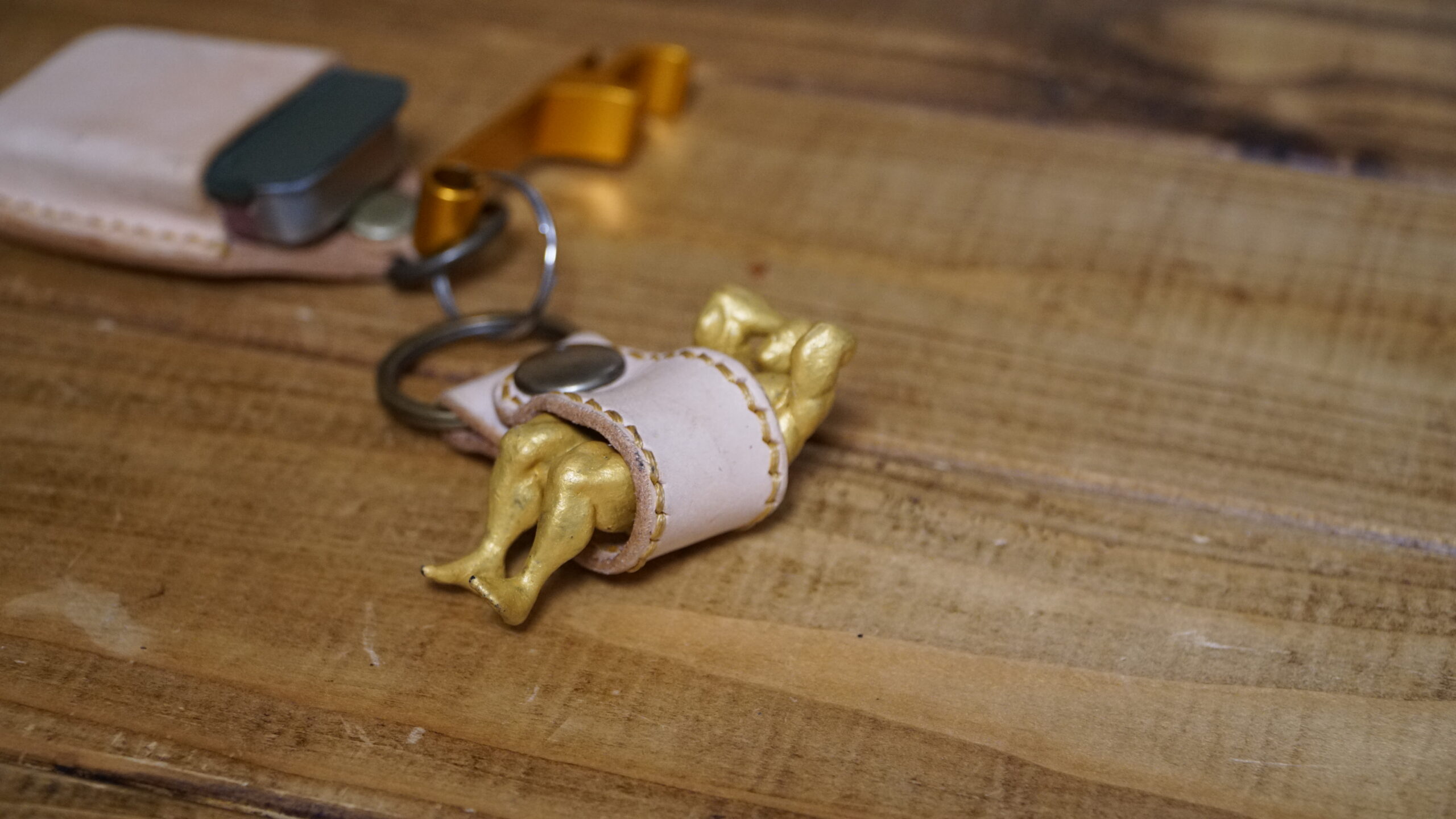 長年使い込んだような風合いが魅力の、ダメージ加工入りメスティン用レザーハンドルカバーが完成しました。